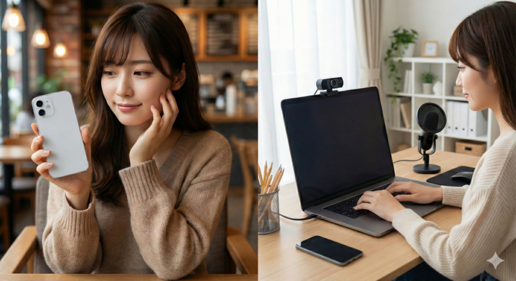なぜなら、男性会員は高画質でスムーズな映像を好む傾向があるからです。スマホのカメラや内蔵マイクは、どうしてもパソコン用のWebカメラや高性能マイクに比べると、画質や音質が劣ってしまいます。