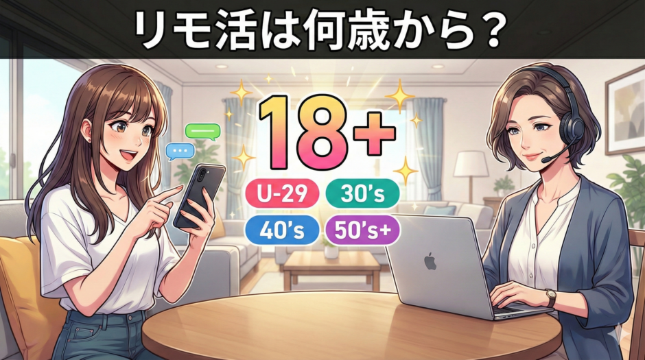 結論から言うと、リモ活は18歳以上なら年齢上限なしで始められます。若い方はもちろん、30代・40代・50代の主婦層まで幅広い年代が活躍しています。